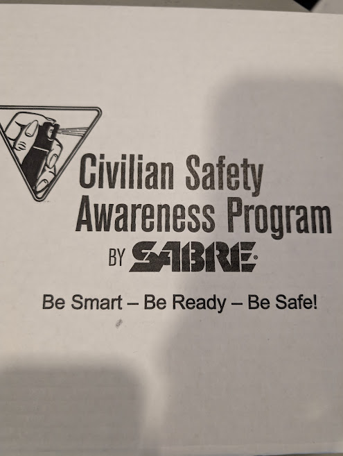 This three (3) hour SABRE Civilian Safety Awareness Program (CSAP) will teach you how to: • Identify and avoid dangerous encounters • Discourage an attacker Unfortunately, all dangerous encounters cannot be avoided, so CSAP will also teach you how to: • Use verbal commands & simple self-defense techniques • Effectively and responsibly deploy SABRE Pepper Spray • Escape an attacker You will become proficient and accurate with your SABRE pepper spray by deploying water-filled practice sprays at static targets as well as deploying the Practice Spray at your instructor during a simulated attack.